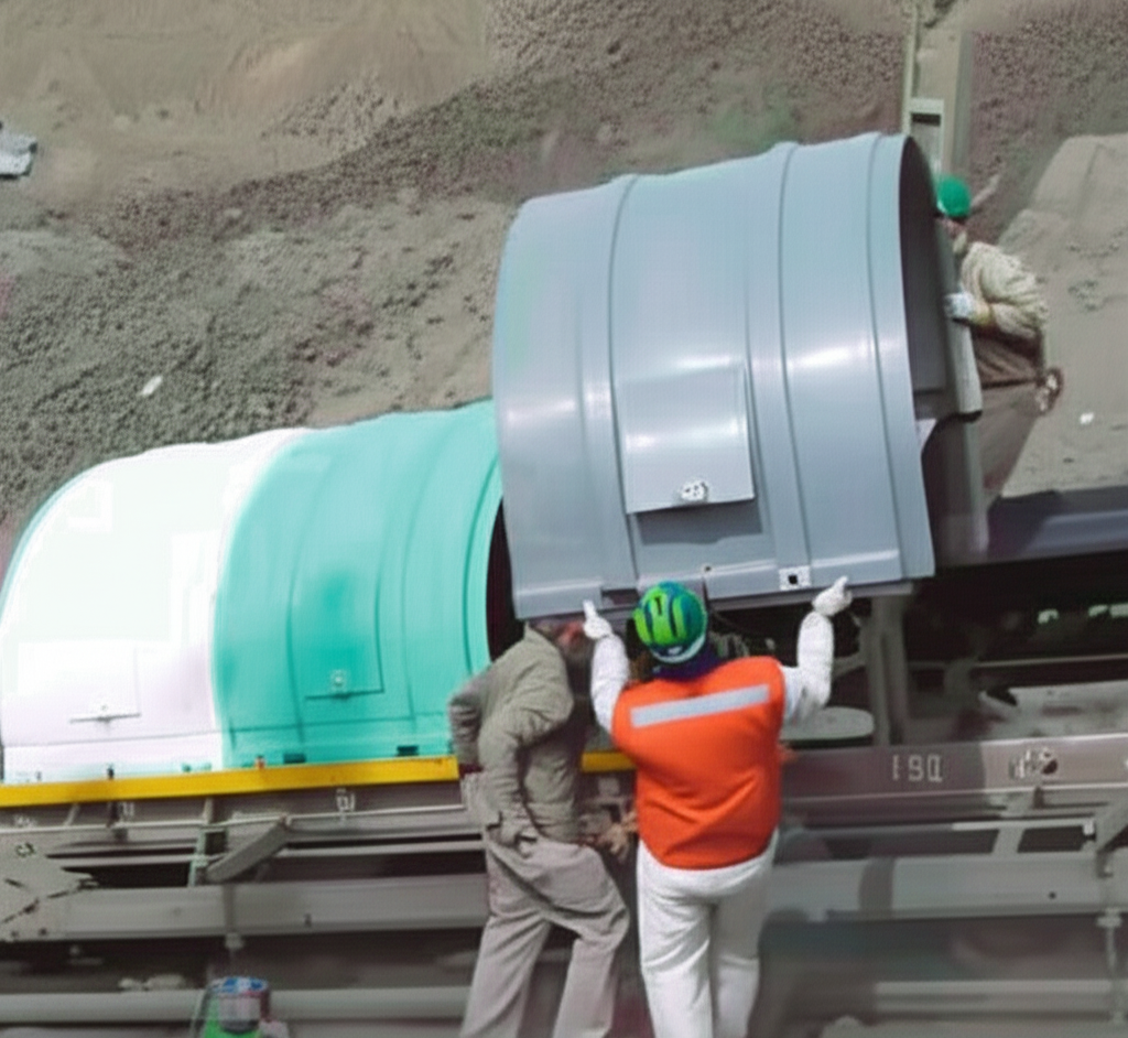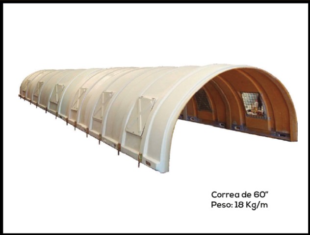 Dependiendo de la ubicación de las fajas, nuestras capotas pueden ser sencillamente instaladas por la mano humana, reduciendo así los costos de movilización en grúas, ya que son modularizadas.