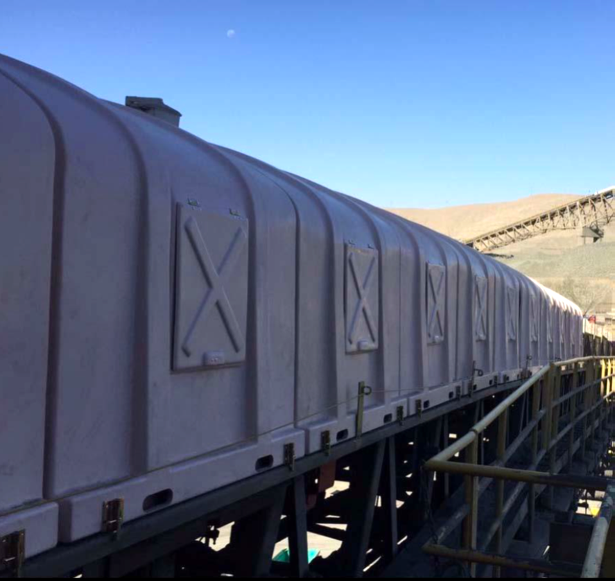 Las Capotas para fajas transportadoras son un sistema de encapsulamiento de correas de transportación de minerales y/o residuos, siendo usados comúnmente sólo con esta finalidad; sin embargo, al no permitir la exposición directa de estos materiales con el medio ambiente, contribuye a mitigar el impacto medio ambiental. Lo beneficioso es que nuestras Capotas están hechas con una tecnología amigable, ligera y de práctica instalación lo que permite tener esta solución a lo largo de las diferentes etapas del proceso de traslado de mena o cantera.