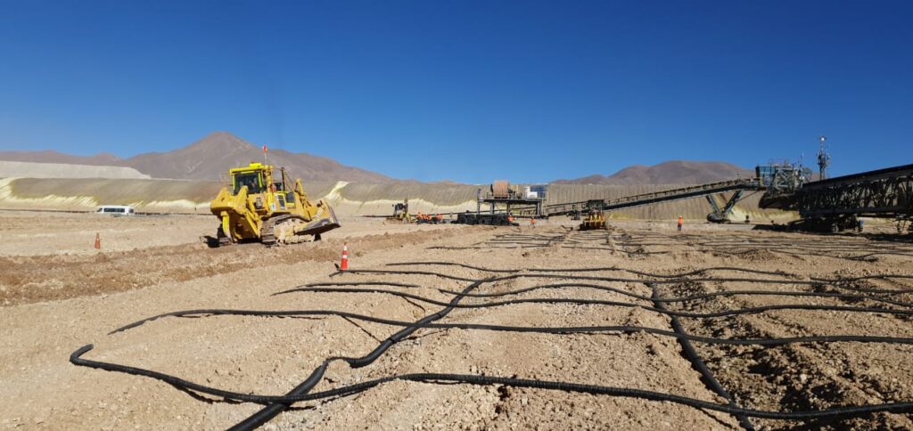 Instalación y calibración de mangas centrales de aireación a lo largo de las pilas de lixiviación, las que se proyectarán hacia las pilas.